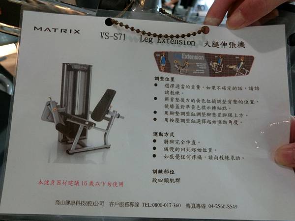 每個器材上面都有吊指示說明書,如何使用、運動方式、訓練部位等都清清楚楚