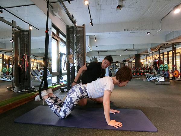 教練超級有耐性一直在旁邊鼓勵,幾次下來後身體慢慢習慣,我竟然蹲下來了