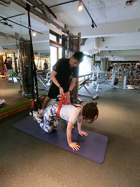 教練說如果有些會員核心沒有那麼好時,他們就會加上彈力帶幫忙輔助,只是可能畫面會有些好笑